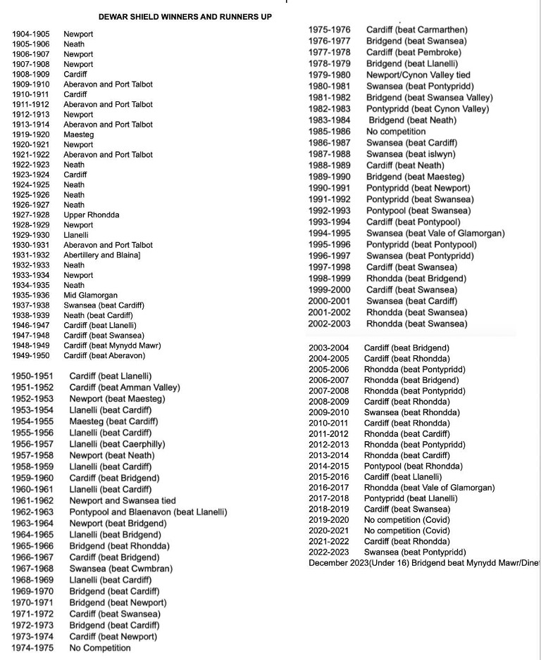 Please find below the historical records for the Dewar Shield competitions: Dewar Shield - Here